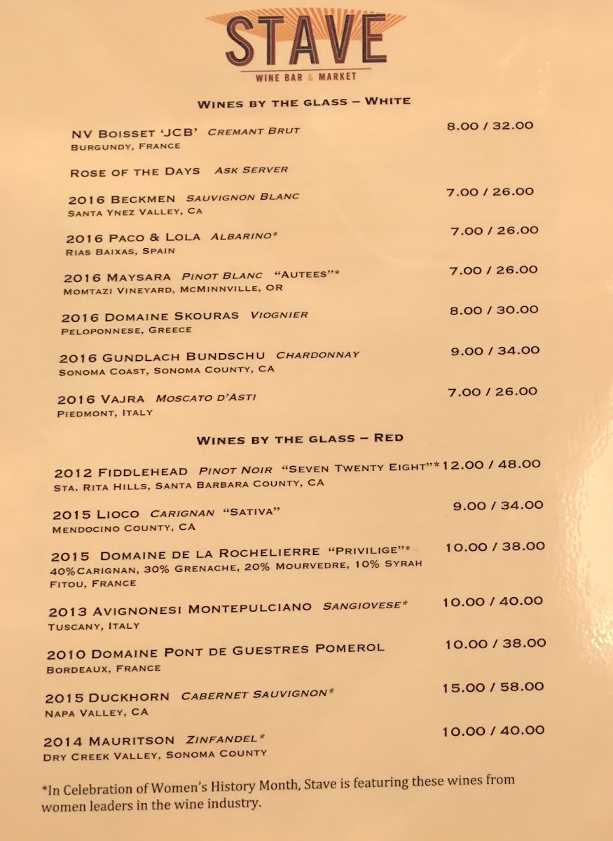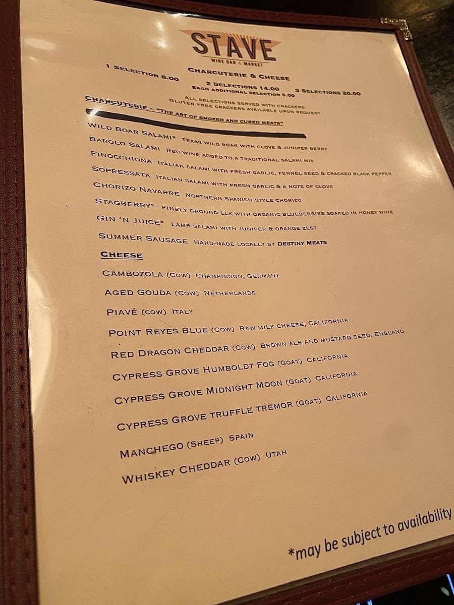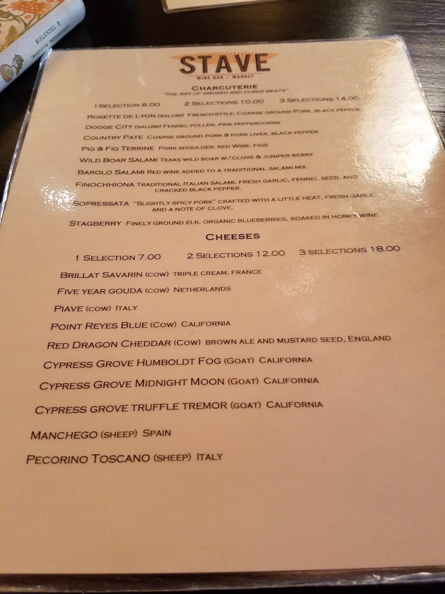 Stave Wine Bar And Market Menu